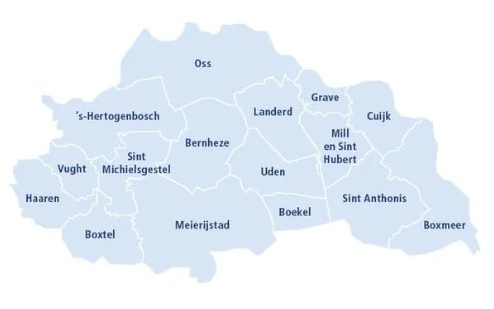 Bernheze, Boekel, Boxtel, Land van Cuijk, ’s-Hertogenbosch, Maashorst, Meierijstad, Oss, Sint-Michielsgestel, Vught